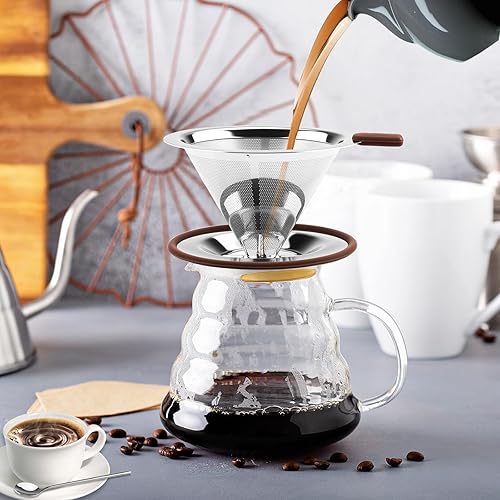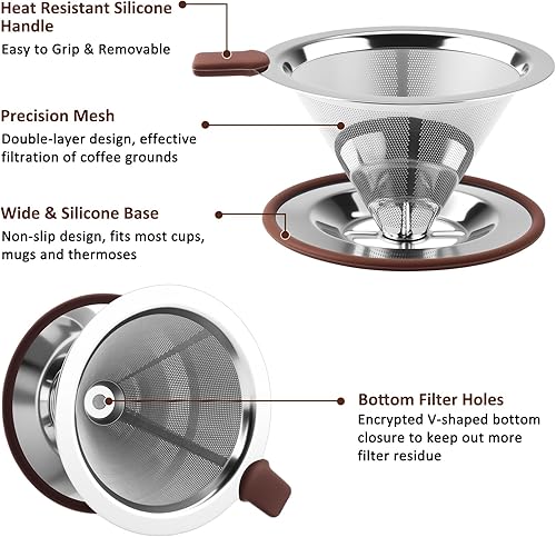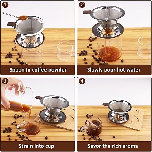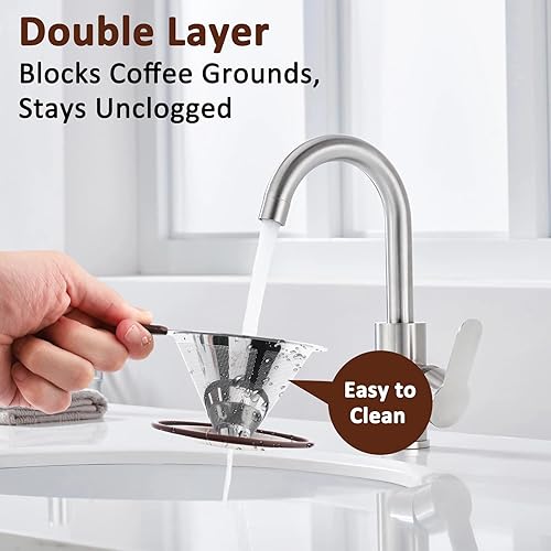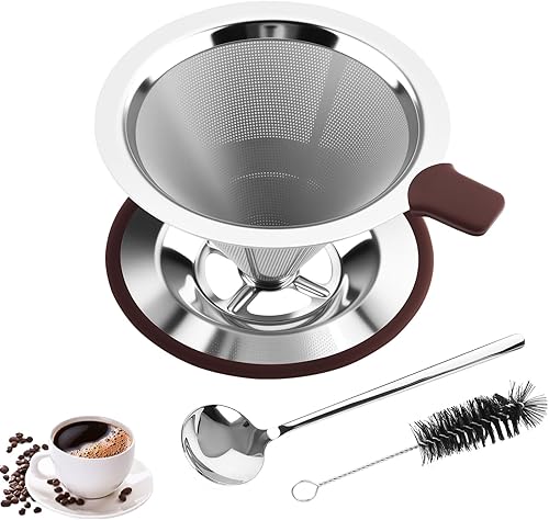 Zosenyer Filtre Cafe Porte Reutilisable, Filtre à Café en Acier Inoxydable pour Faire du Café Manuel, porte Filtre Café Permanent pour Café Sans Papier, Comprenant Cuillère et une Brosse De Nettoyage
