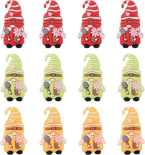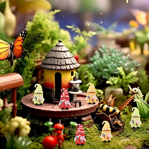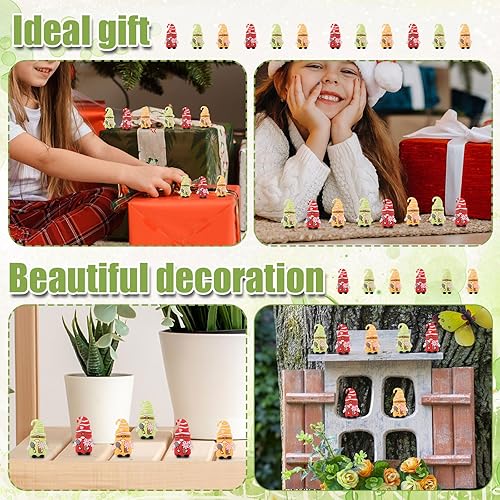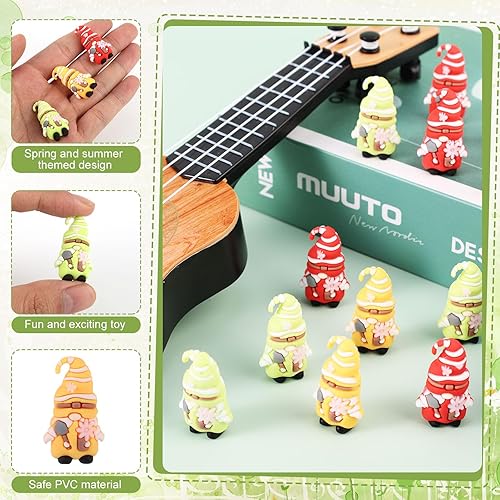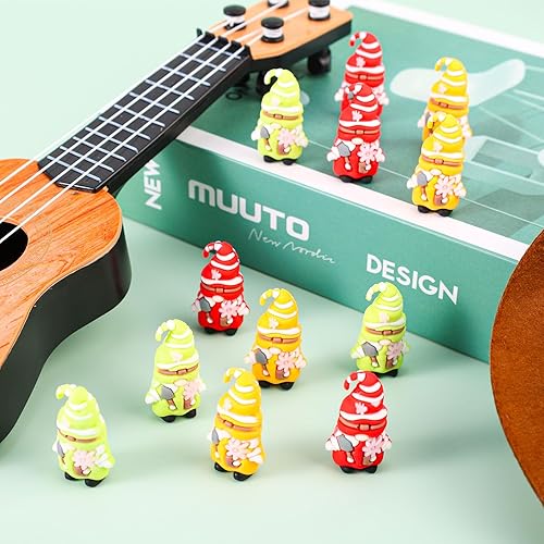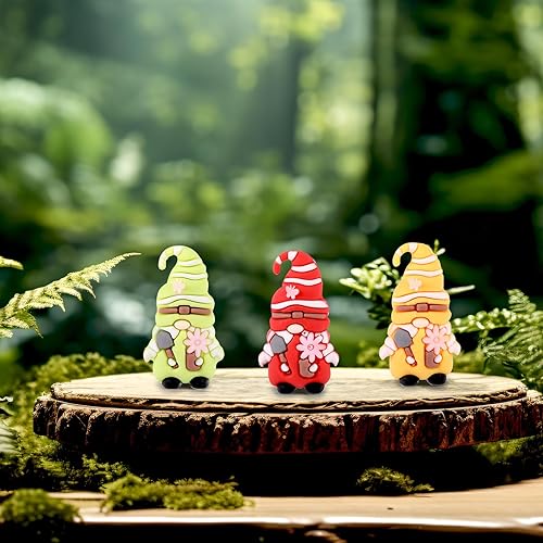 Lyreh Lot de 12 Mini Statues de Nains Jardin, PVC Couleurs Assorties Décoration Extérieure Jolies Fées Fleuries pour la Maison Cour Le Jardin Fêtes Les Anniversaires (Vert, Jaune, Rouge)