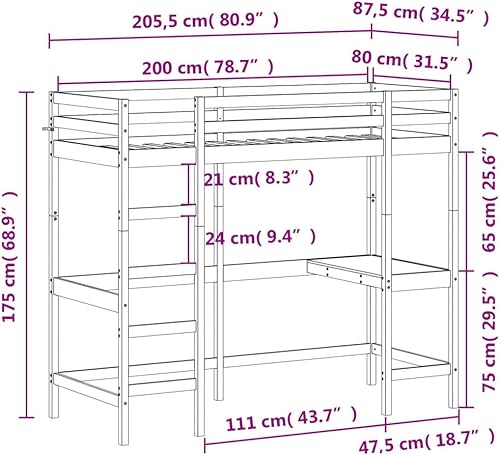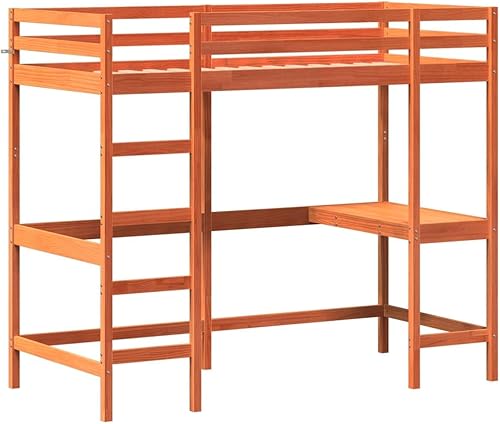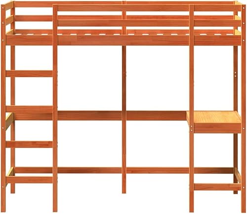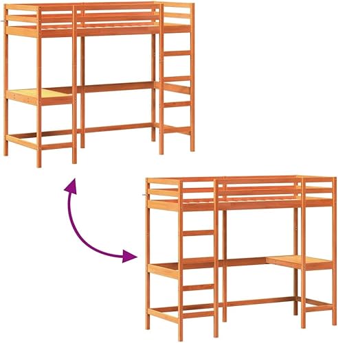 vidaXL Lit Superposé avec Bureau, Lit Mezzanine avec Sommier à Lattes pour Enfant, Meuble de Chambre, Moderne, 90x190 cm Bois de Pin Massif