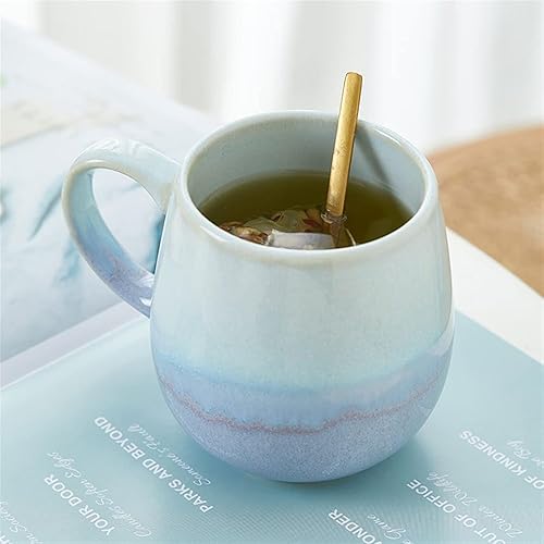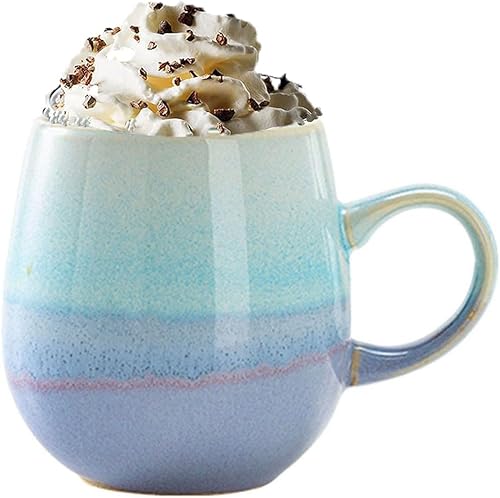 eKsdf Grande tasse à café - 500 ml - Avec anse - En porcelaine - Moderne - Cadeau pour les amateurs de café - Pour femme, maman, papa, cappuccino, céréales (bleu lac)