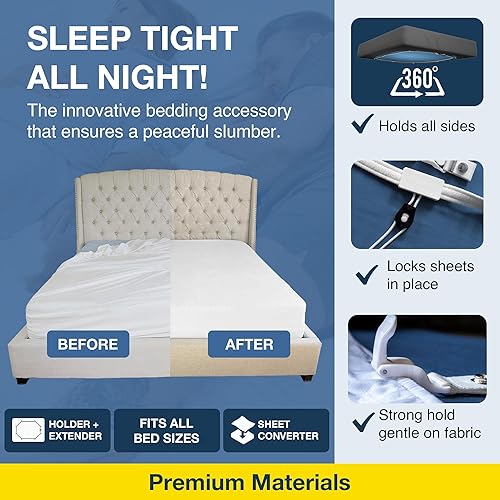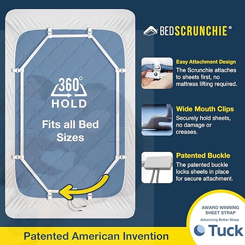 BED SCRUNCHIE - Sangles de maintien pour drap - clips adhérents résistants/corde de parachute renforcée - tendeur à 360°