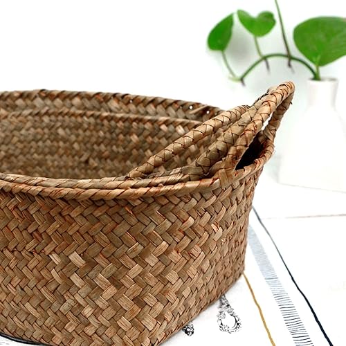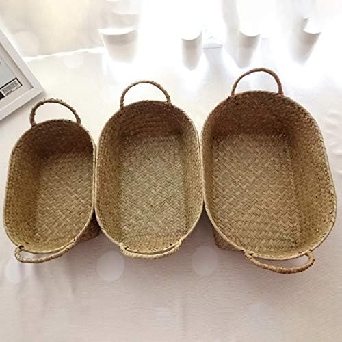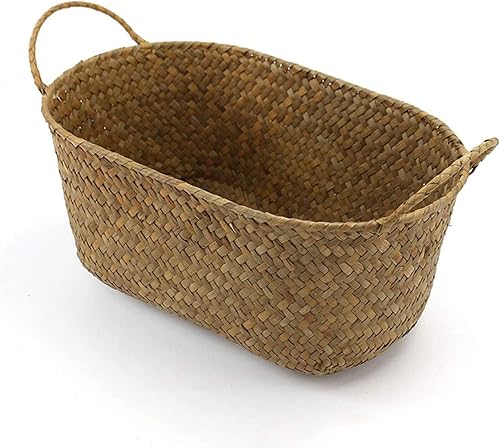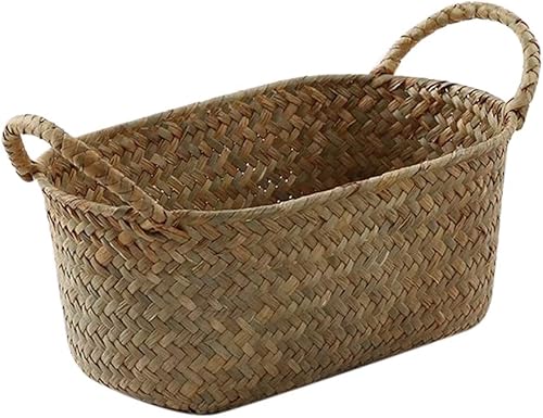 Kopinma Panier en paille polyvalent fabriqué à la main - Idéal pour le maquillage, le pain et les fruits, design rotin, respectueux de l'environnement, 24 x 15 x 9 cm