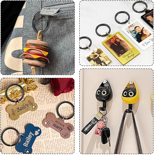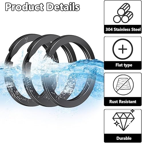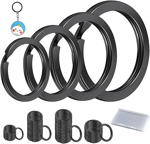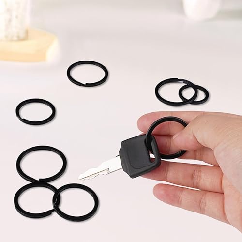 60 Pièces Anneaux Porte Clé 20mm/25mm/30mm/35mm Noirs Porte-clés à Bords Ronds Plats pour Toutes Sortes de Clés, Bricolage, Artisanat
