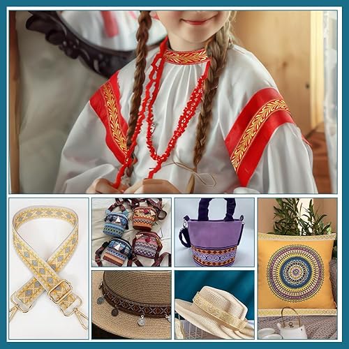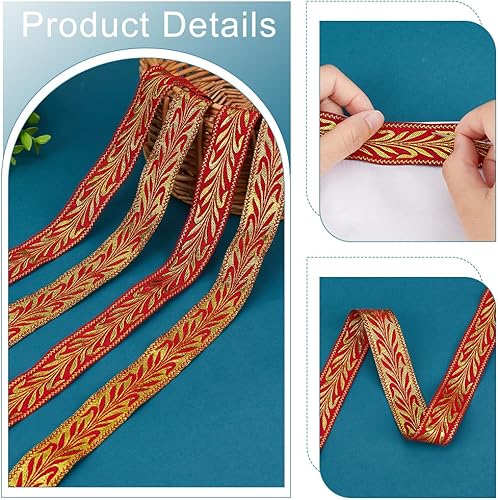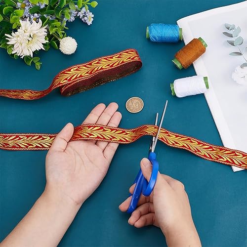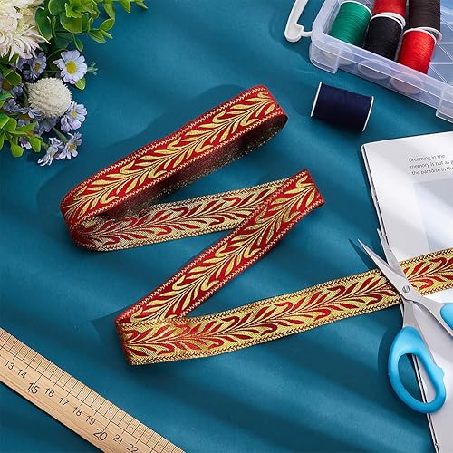 PH PandaHall Ruban Jacquard de Style Ethnique 14m Ruban en Feuille D'Or de 25mm Ruban Vintage Brodé Ruban Tissé Garniture en Tissu Frange pour Vêtements Couture Sac Fait Main 2 paquets