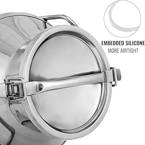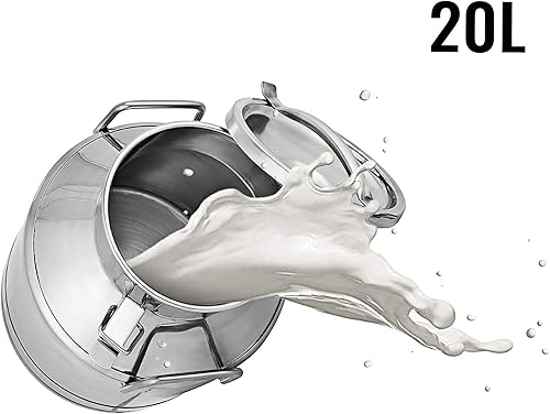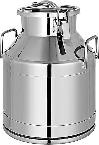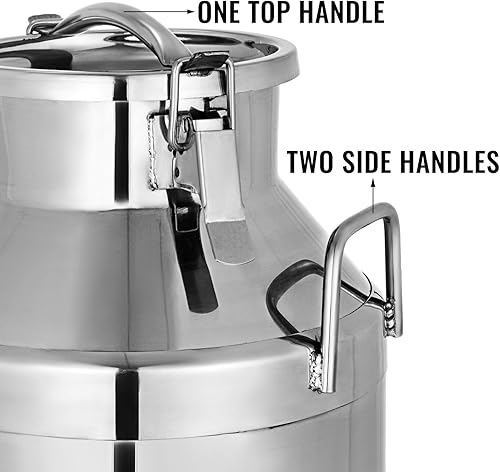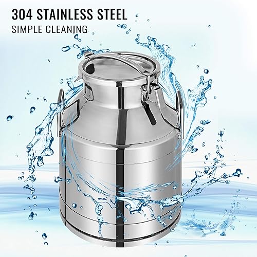 VEVOR Bidon à Lait INOX 20L Seau à Lait en Acier Inoxydable Épaisseur 1 mm Bidon Huile avec Couvercle Hermétique Récipient Pot à Lait Marmite 2 Boucles de Verrouillage Poignées Portables 190x320 mm