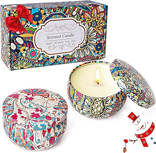 Lot de 2 bougies parfumées de Noël, pour femme, petite bougie parfumée, aromathérapie, cire de soja, avec citron et jasmin, kit cadeau pour calendrier de l'Avent, anniversaire, Saint-Valentin, fête