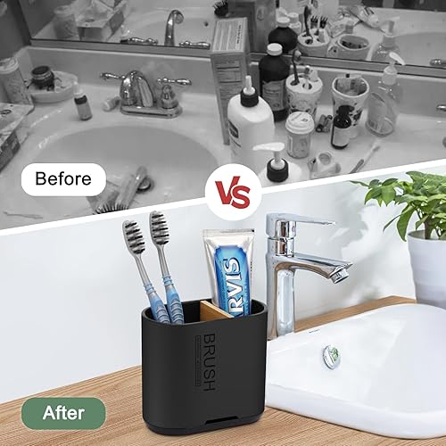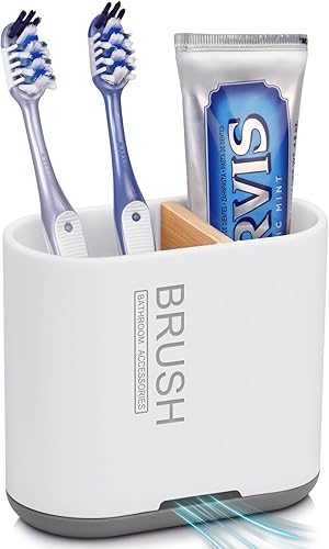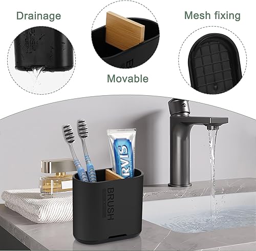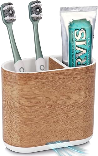PARKMANI Porte Brosses à Dents, Support Brosse a Dent Electrique, Détachable pour la Porte Brosse à Dents Electrique avec Drainage pour la Famille, Les Enfants (Wood Grain)