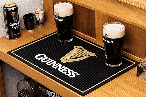 LORD'S ROCKS Guinness Tapis de Bar et Anti-déversement pour comptoirs | Tapis de Bar Irlandais en Caoutchouc pour Gouttes avec Logo Guinness Harp | Tapis de Service de Bar Professionnel avec bière