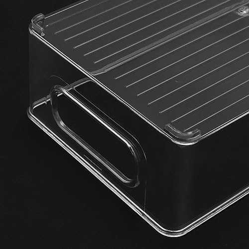 HEIHAK Lot de 4 Bac Rangement Frigo, Boîtes de Rangement Frigo Transparent Organiseur Frigo Cusine avec Poignée en Plastique pour Réfrigérateur, Garde-manger, Armoire