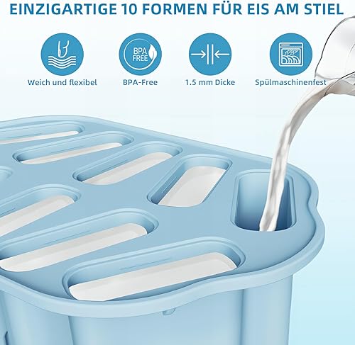 Bugucat Lot de 10 moules à glace, en silicone, réutilisables, sans BPA, avec tige, pour enfants et adultes