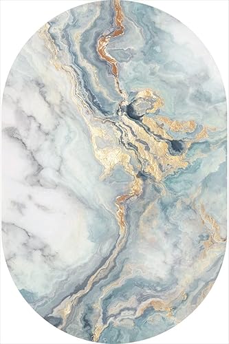 LONGSAO Tapis de Salon Moderne, Tapis de Chambre Ovale Super Doux Tapis D'intérieur Décoratif Coussin de Canapé Faux marbre Or Bleu,70 x 140 cm