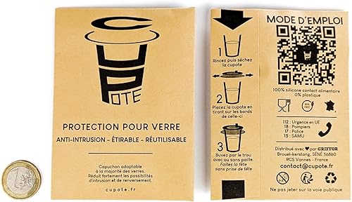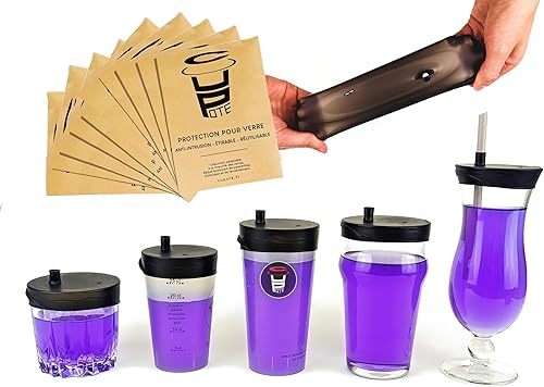 Cupote Lot de 10 Protections anti-drogue réutilisable en silicone extensible | Capote de verre | Paille integrée | Capuchon anti-drogue anti-renversement