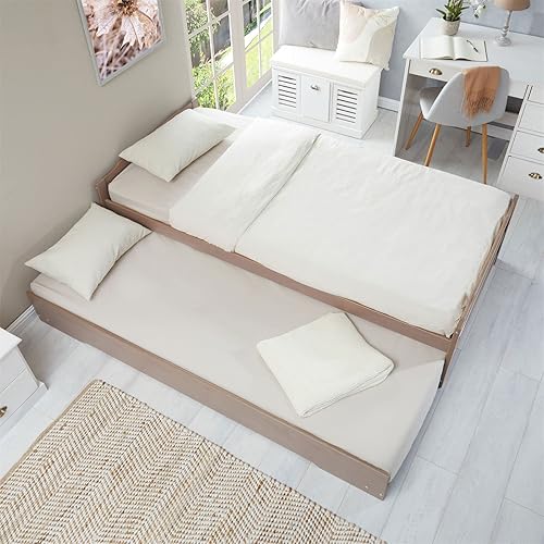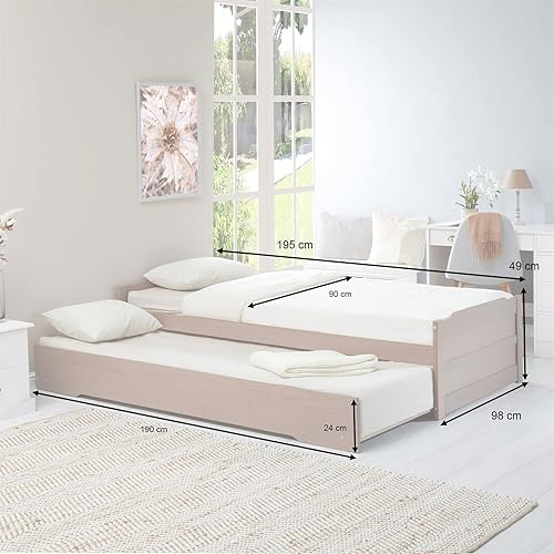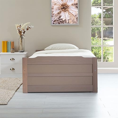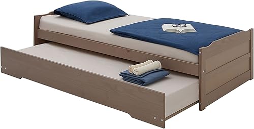 IDIMEX Lit gigogne Lorena 1 Place tiroir lit Simple Fonctionnel pour Enfant 90 x 190 cm en pin Massif lasuré Taupe