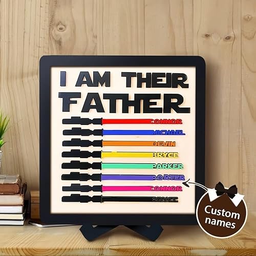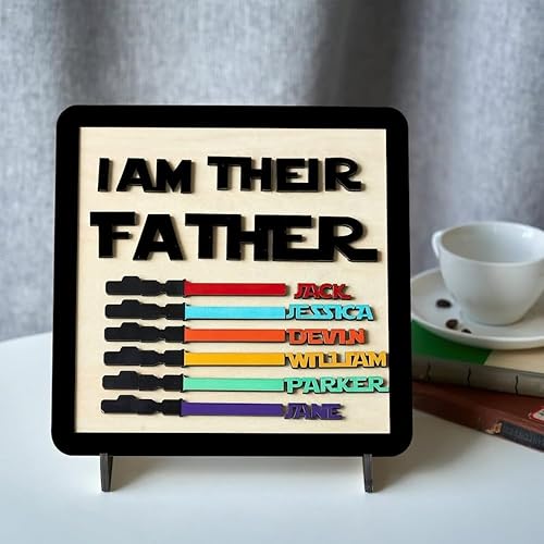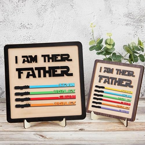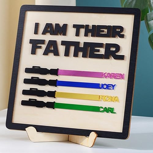 Panneau en bois personnalisé « I Am Their Father », plaques nominatives personnalisées, cadre père, sabre laser personnalisé, cadeau pour papa, papa (25 x 25 cm)