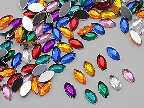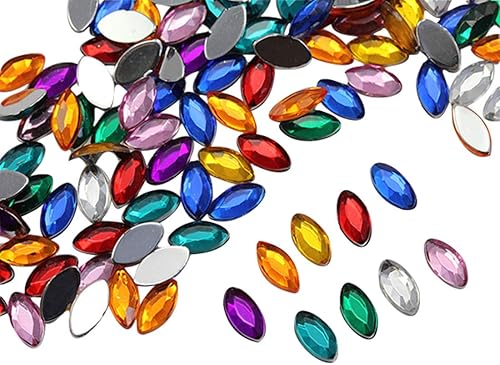 Allstarco 8x4mm Assorted Colors Tiny Navette Flat Back Acrylic Rhinestones Marquise Gems for Crafts Horse Eye Costume Embelishments Card Making Jewels Jewelry Making Cosplay Jewels - 300 Pieces