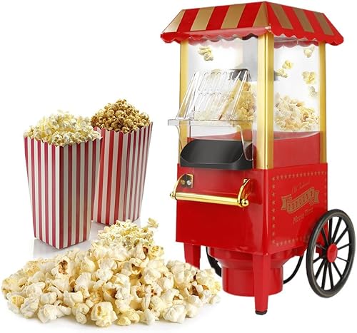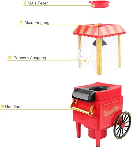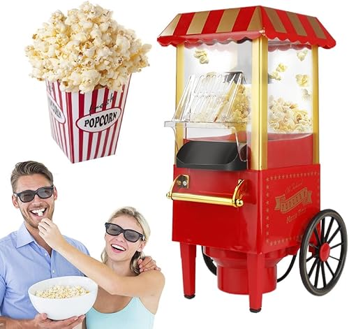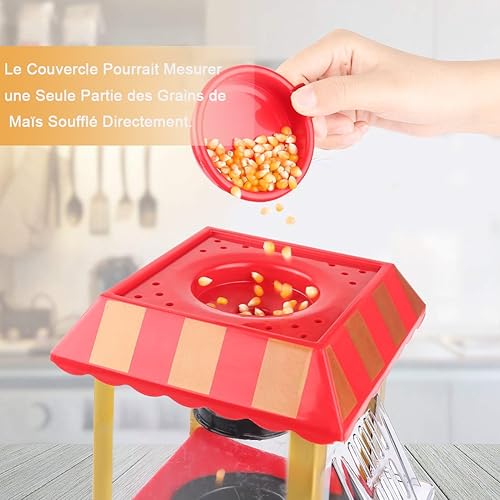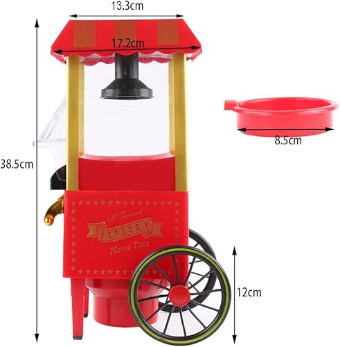 Machine à pop-corn rétro - 1200 W - Pour la maison - Avec air chaud - Sans graisse - Sans huile - Opération à un bouton - Popcorn Popper - Rouge
