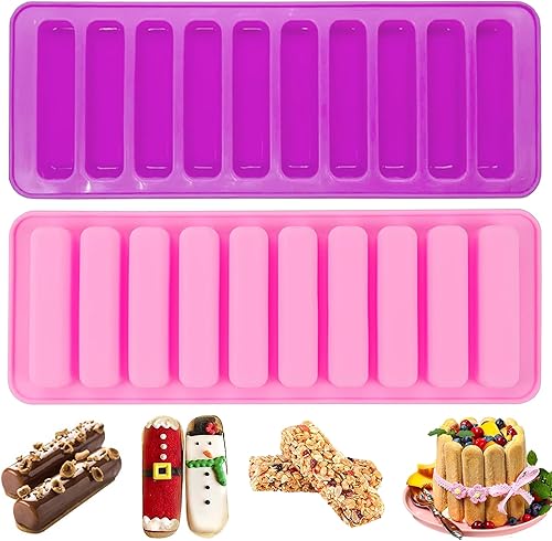 XCSJ 2pcs Moule Barre de Céréales Moule Silicone Rectangulaire 10 Cavités Anti-Adhésif Moule Finger Moule en Silicone à Biscuits Rectangulaire pour Barres à Céréales, Barre Au Chocolat, Biscuits (A)