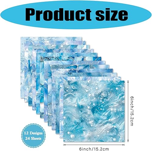 Lot de 24 feuilles de papier décoratif en cristal de glace pour scrapbooking, journal, loisirs créatifs, projets créatifs