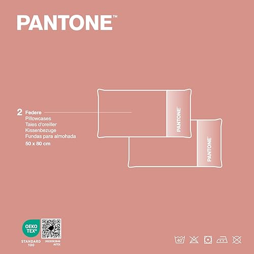 Pantone - Taies d'oreiller d'oreiller de lit 50 x 80 cm Coton 100% certifié OekoTex, Housse de Coussin de lit, 2 pièces, Frais Respirants, taie d'oreiller avec Rabat de 20 cm, Linge de lit Doux et