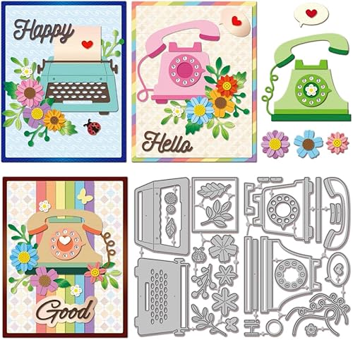 GLOBLELAND Découpes de Fleurs de Machine à Écrire Vintage pour la Fabrication de Cartes Téléphone Métal Découpes de Pochoirs pour le Scrapbooking DIY Décoration D'Album en Relief