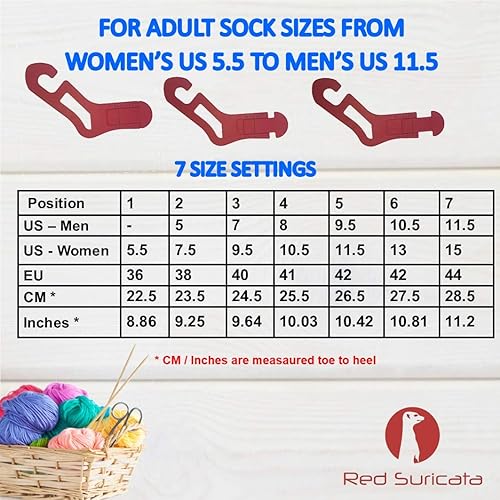 Red Suricata - Bloqueurs de chaussettes à taille ajustable - Paire de bloqueurs de chaussettes pour le tricot et le crochet de chaussettes