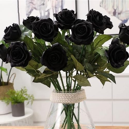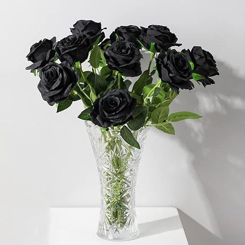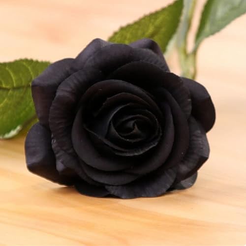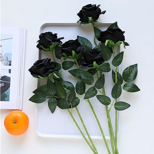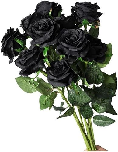 Corkwaw Lot de 8 roses artificielles en soie réalistes à longue tige en vrac pour centres de table, arrangements floraux de mariage, festival (noir)