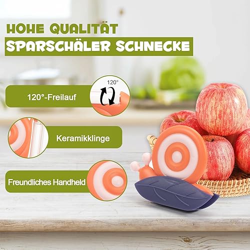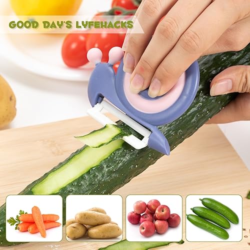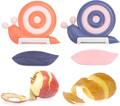 Lot de 2 éplucheurs à escargots avec couteaux en céramique - éplucheurs pour enfants avec poignées antidérapantes | éplucheurs à bandes pour légumes et fruits | aides de cuisine adaptées aux enfants