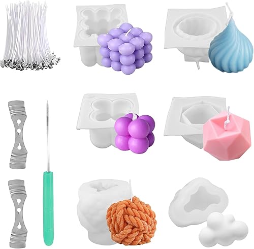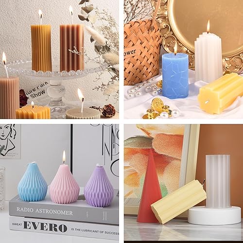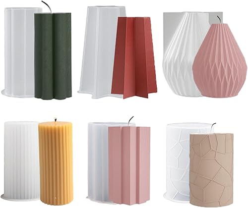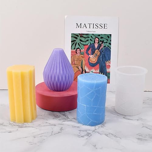 QINGYIWL4Pièces Moules à Bougies Cylindriques, 3D Kit Bougie a Faire Soi Meme,Moules à Bougie 3D DIY Moule en Silicone Moules en Silicone pour Moulage pour Bougies Parfumées au Savon de Noël