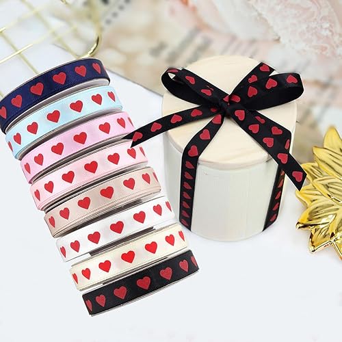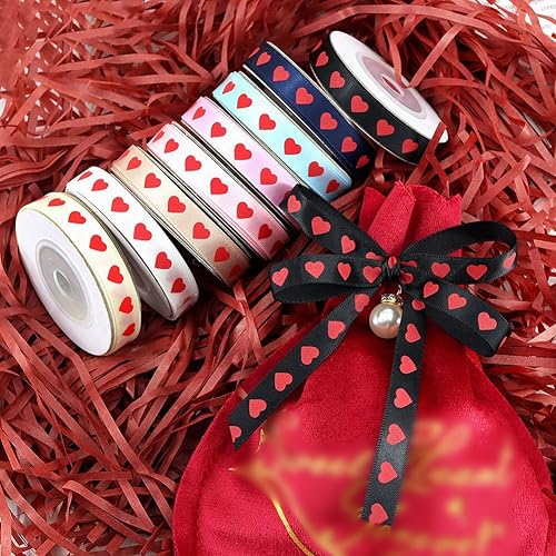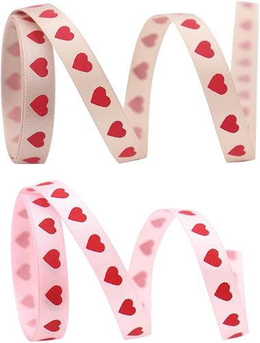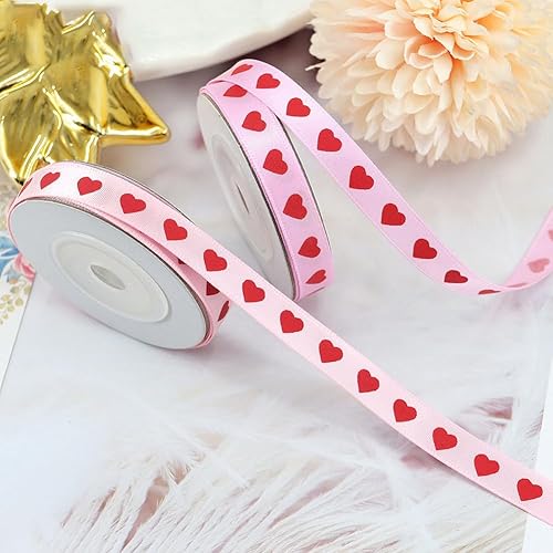Lot de 2 Rouleaux de Ruban satiné en Forme de cœur Rouge de 1 cm x 9,1 m pour la Saint-Valentin, Emballage Cadeau, Artisanat, boîtes de Ruban pour décoration