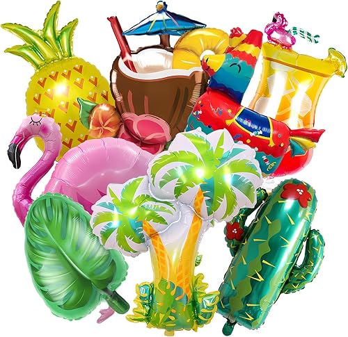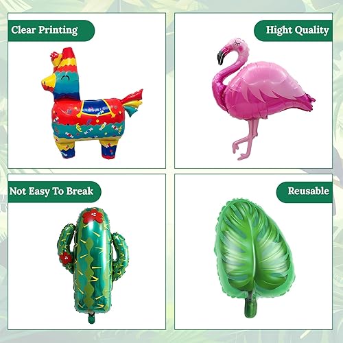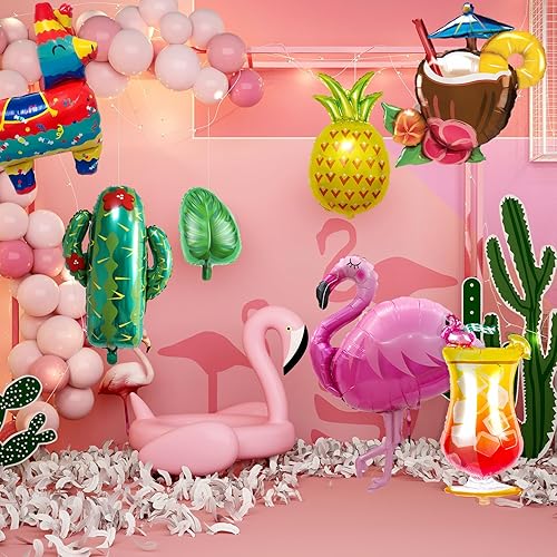 Ballons décoratifs tropicaux Moana en aluminium - Grand flamant rose, ananas, cocotier, cactus, hawaïen pour hawaïen, plage, piscine, fête d'anniversaire, bar