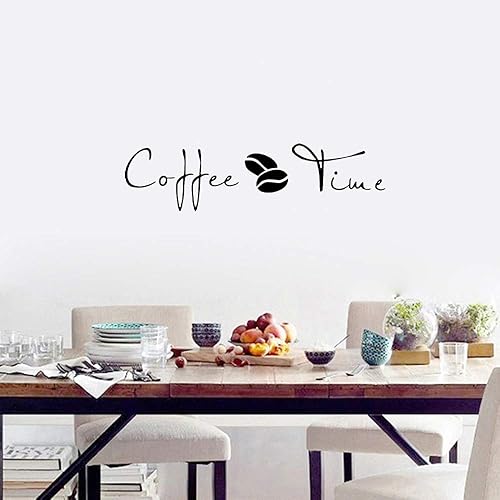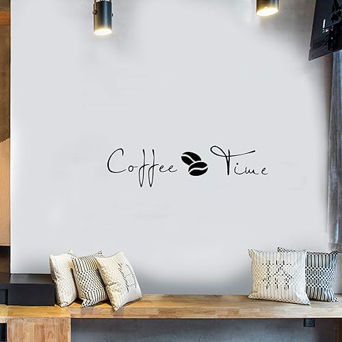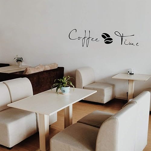 Sticker mural amovible en vinyle avec inscription en anglais « Coffee Time » pour chambre à coucher, salon, bureau, fenêtre, porte