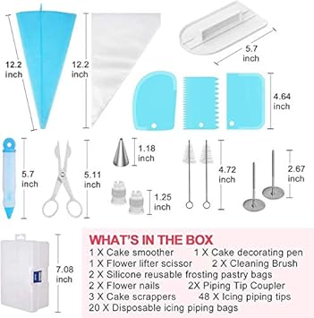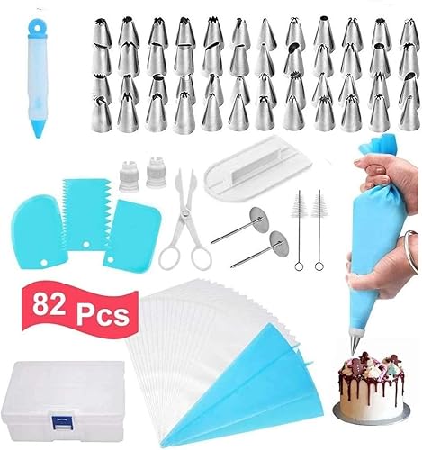 Lot de 82 poches à douille et douilles pour décoration de gâteaux avec sac en silicone, embouts, coupleurs | Sacs à douille réutilisables et douilles pour gâteaux, pâtisseries, cupcakes
