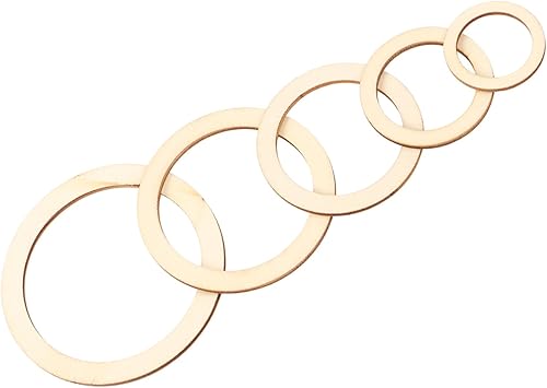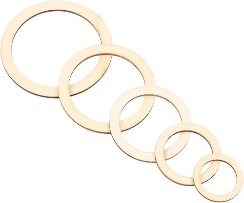 Lot de 205 Anneaux en Bois Non Finis, 205 Pièces, Cercles en Bois Brut, 5 Tailles, Légers, Robustes, Lissants, Simples, Anneaux de Couronne en Bois pour Travaux Manuels,