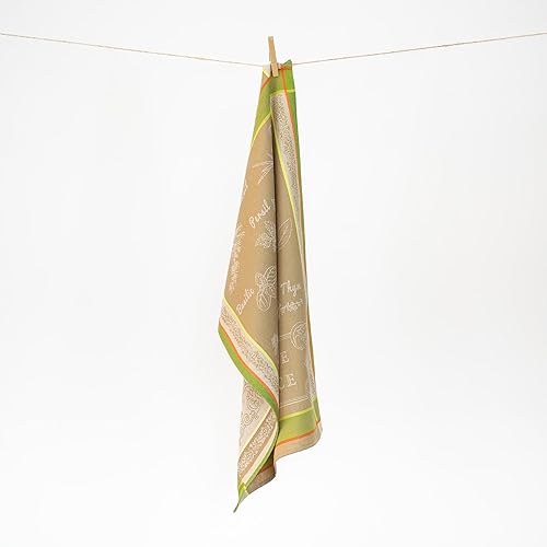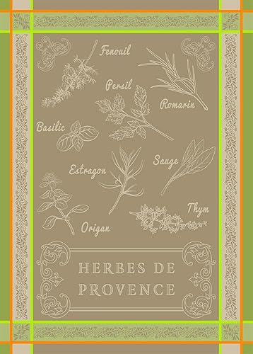Autrefois Torchon Imprimé Jacquard Lin 48x70 cm, Motif Herbes de Provence, Herbier Lin