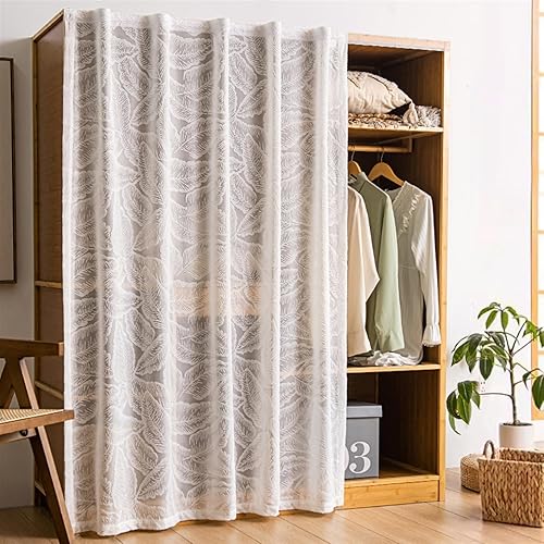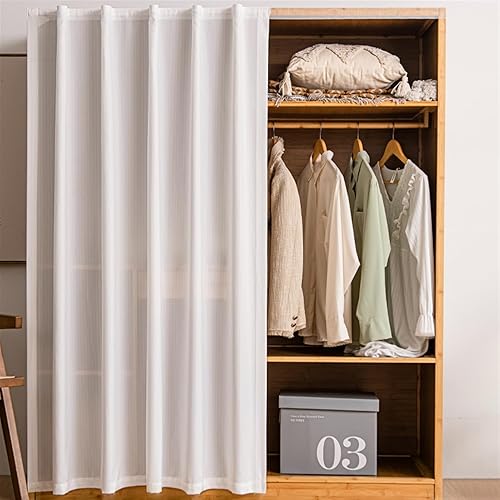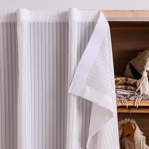 BESTORI Rideaux d'armoires de Cuisine Installation Crochet et Boucle Anti-poussière pour Cantonnières Courtes pour Salon, étagères, sous l'évier, Salle de Bain, Blanc 2, 80x200cm (L x H)