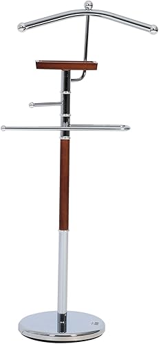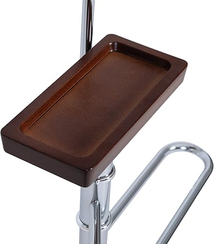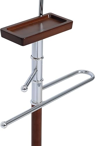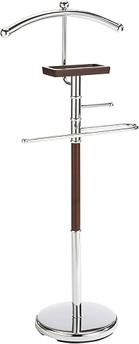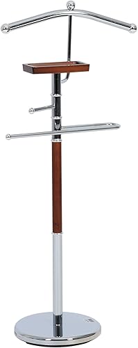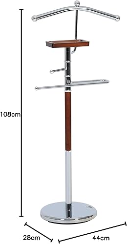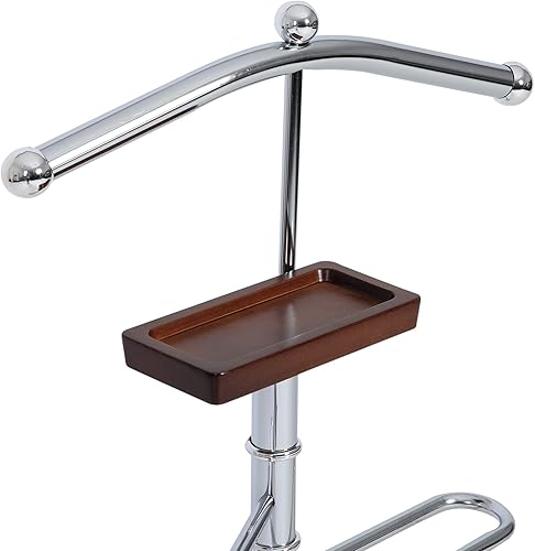 axentia Valet de Chambre Godiva en Métal Chromé et Bois Hauteur 108 cm, Valet de Nuit Stable avec Vide-Poches et Porte-Cravates, Porte-Vêtements de Femme Homme
