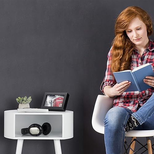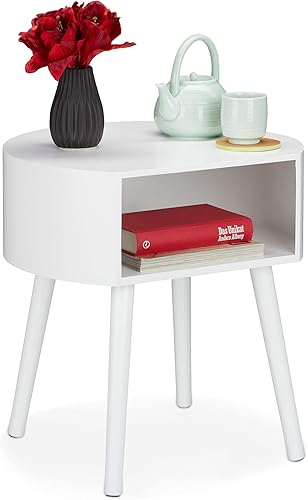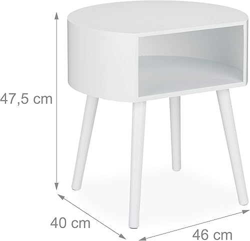 Relaxdays Table d’appoint, Table de Chevet Ronde casier, Pieds en Bois, Design Simple, HxlxP 47,5 x 46 x 40 cm Blanche