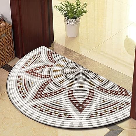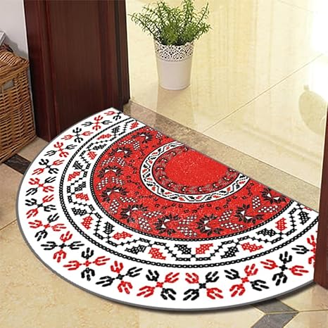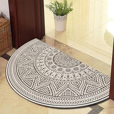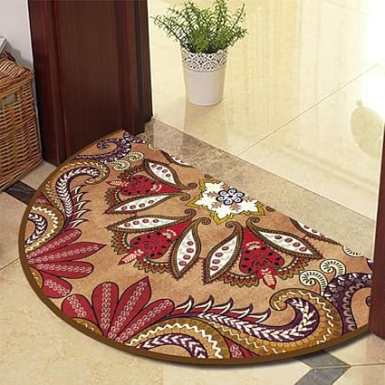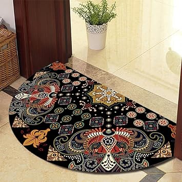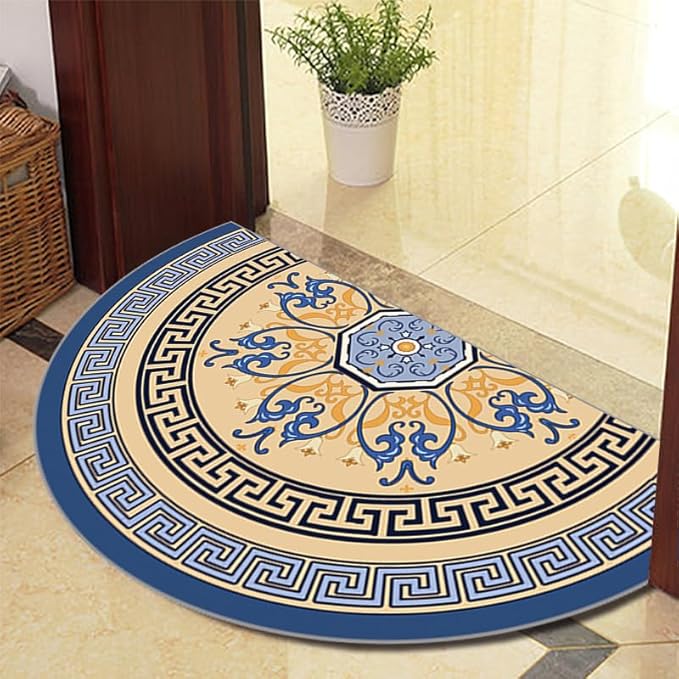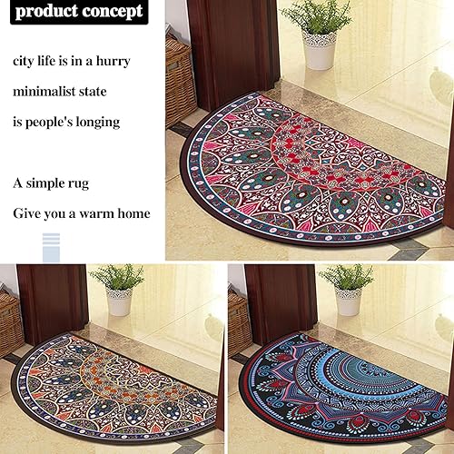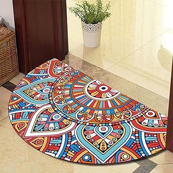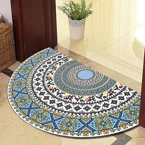Eseriallen Paillasson demi-rond lavable en demi-cercle Mandala Boho Antidérapant Bleu Vert Luxe F (16) 80 cm x 130 cm