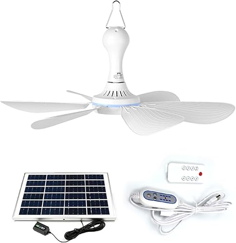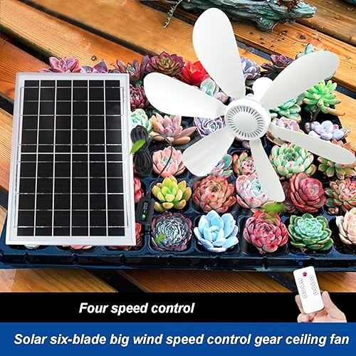 Gerrit Ventilateur Solaire avec Câble de Télécommande Petit Ventilateur de Plafond Pales Détachables en ABS Facile À Assembler avec Panneau Solaire Facile À pour L'extérieur Le Blanc 6V6W/6V10W