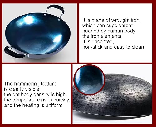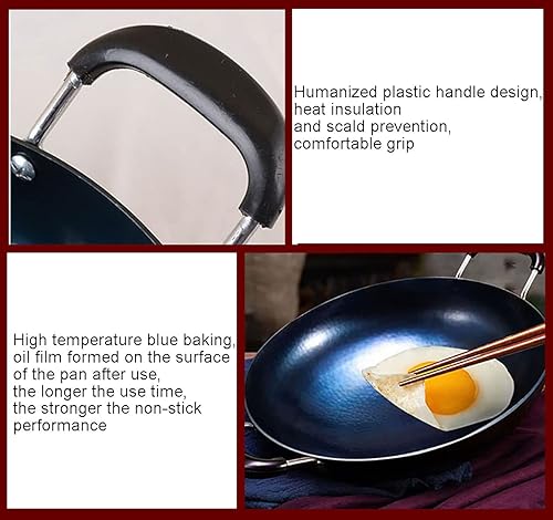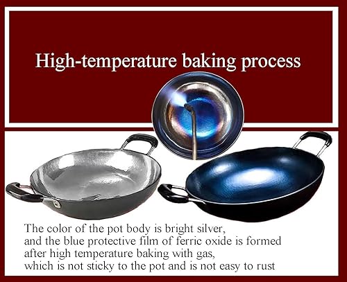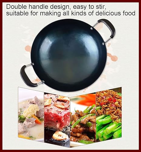 Poêle chinoise en fer forgé à la main, sans revêtement antiadhésif, poêle à frire à deux oreilles, wok, poêles à frire (32 cm)