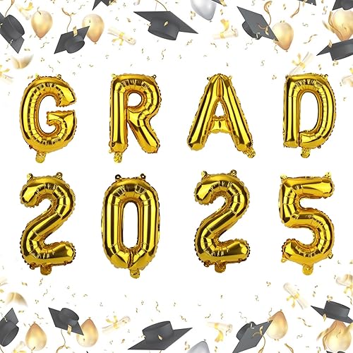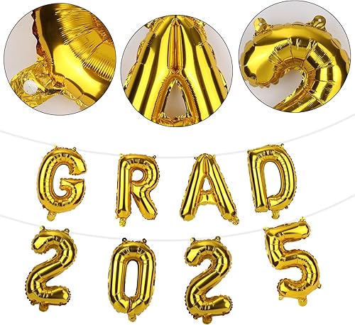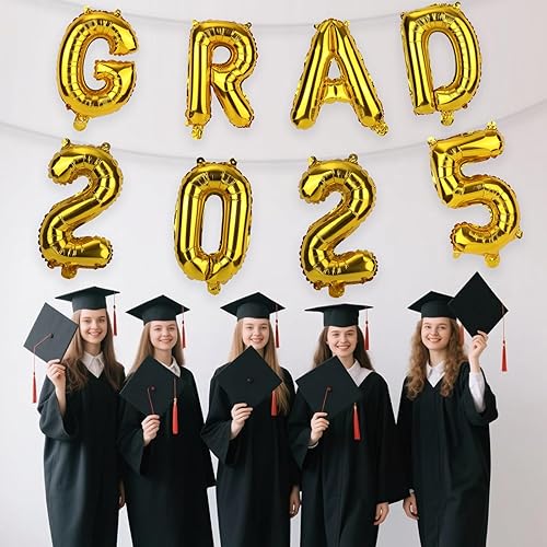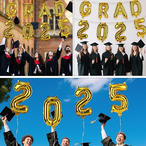 BOXOB Ballon Chiffre 2025 de Diplôme, 40cm Ballons en Aluminium Or Dorés GRAD 2025 pour Fête de Remise des Diplômes Décorations Toile Fond Photomaton Fournitures pour Célébrations Fin D'année