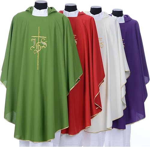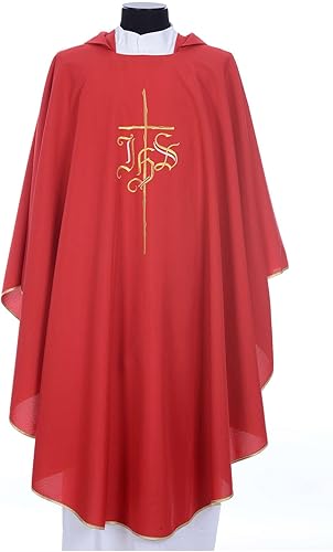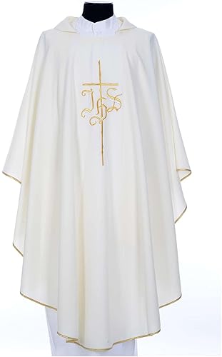 Chasuble liturgique IHS Croix stylisée 4 Couleurs pol., Blanc