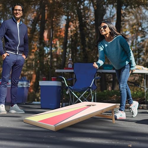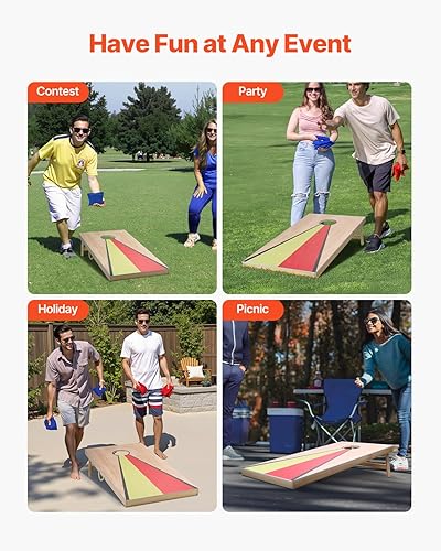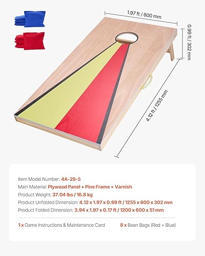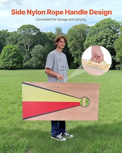 VEVOR Jeu de Cornhole 125,5 x 60 cm, Planche de Jeu de Poche Portable, Babette en Bois Massif, avec 8 Sacs de Haricots et Poignée, pour Intérieur et Extérieur Jardin Arrière-Cour Plage Camping