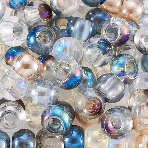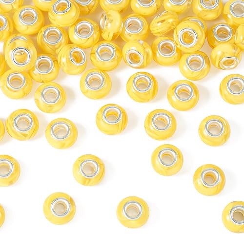 Crafans Lot de 50 perles européennes avec empreintes de pattes de chien à double noyau Rondelle en résine à grand trou 14 mm Style vintage pour la fabrication de bracelets, colliers, bijoux