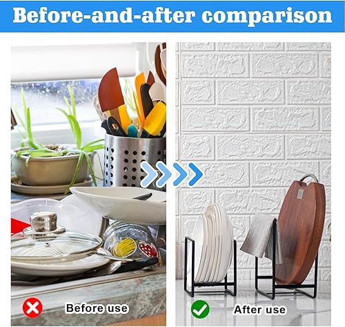 Nizirioo Lot de 3 supports d'assiettes en métal - Égouttoir à vaisselle avec poignées - Multifonction - Armoire de cuisine - Égouttoir à vaisselle pour assiettes, planches à découper, couvercles de