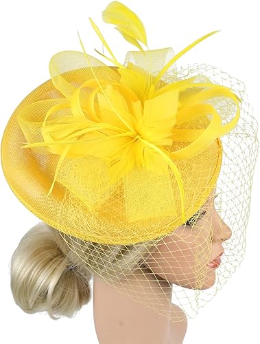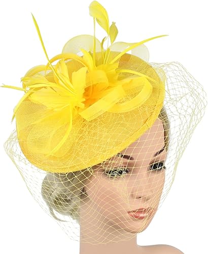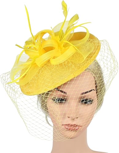 SJTJSPX Vintage Fascinator Women Veil Pillbox Hat Wedding Ascot Hats Flower Ribbons Feathers Headband Cocktail Tea Party Birdcage Mesh Hen Party Barrettes Hat 1950s Headwear for Ladies and Girls