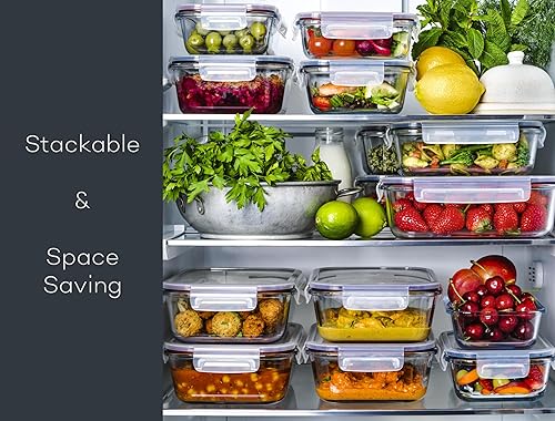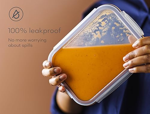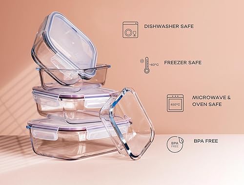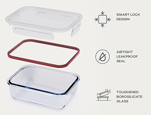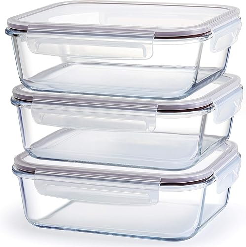 Franklin Lade Lot de 3 boîtes de conservation en verre extra larges de 1520 ml,Couvercle hermétique et étanche sans BPA,Passe au four, congélateur et lave-vaisselle