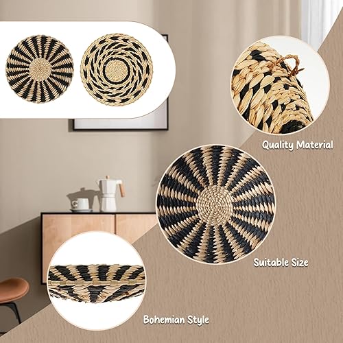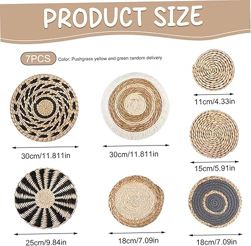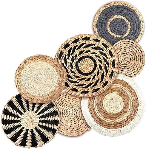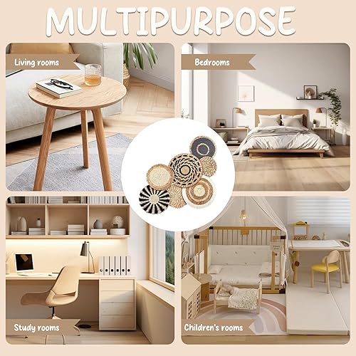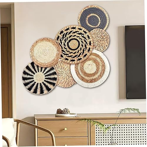 SWEETBIUTI Décoration Murale tissée Ronde rotin Fleur de Panier Mural tissé Rustique Naturel décor Boho Art Mural 7pcs pour Chambre, Salon, décoration Murale de Salle de Bain