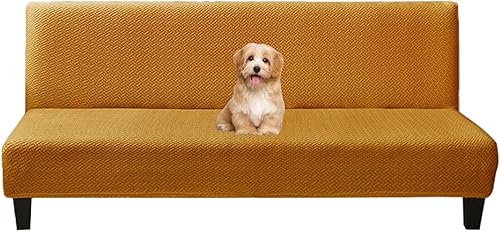 GUYIRT Housse de futon pour canapé-lit, de couleur unie, extensible, pliable avec élastique en bas, pour salon, (jaune, taille S)