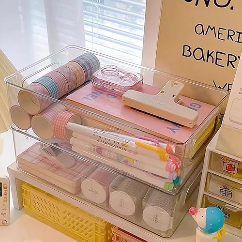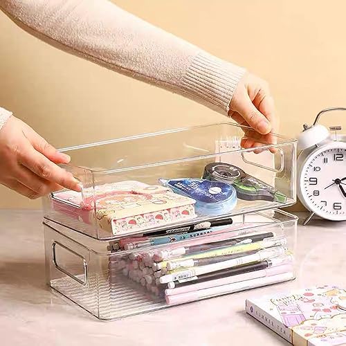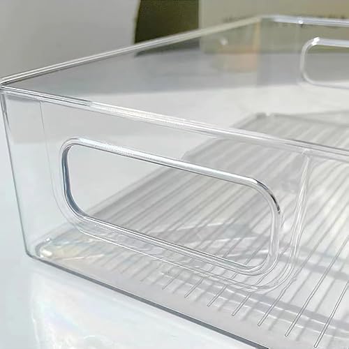 XUEHOU Organisateur de réfrigérateur - Organiseur de cuisine - En plastique - Empilable - Transparent - Avec poignée - Pour cuisine, bureau